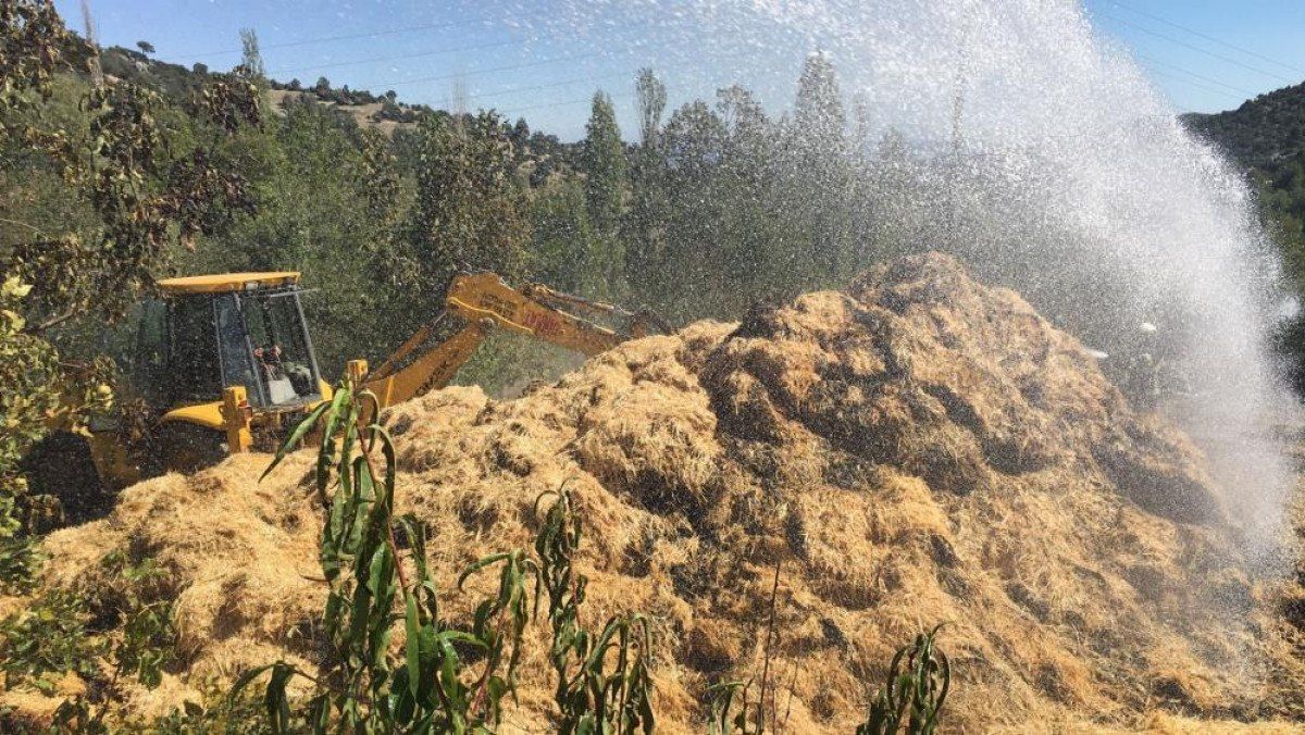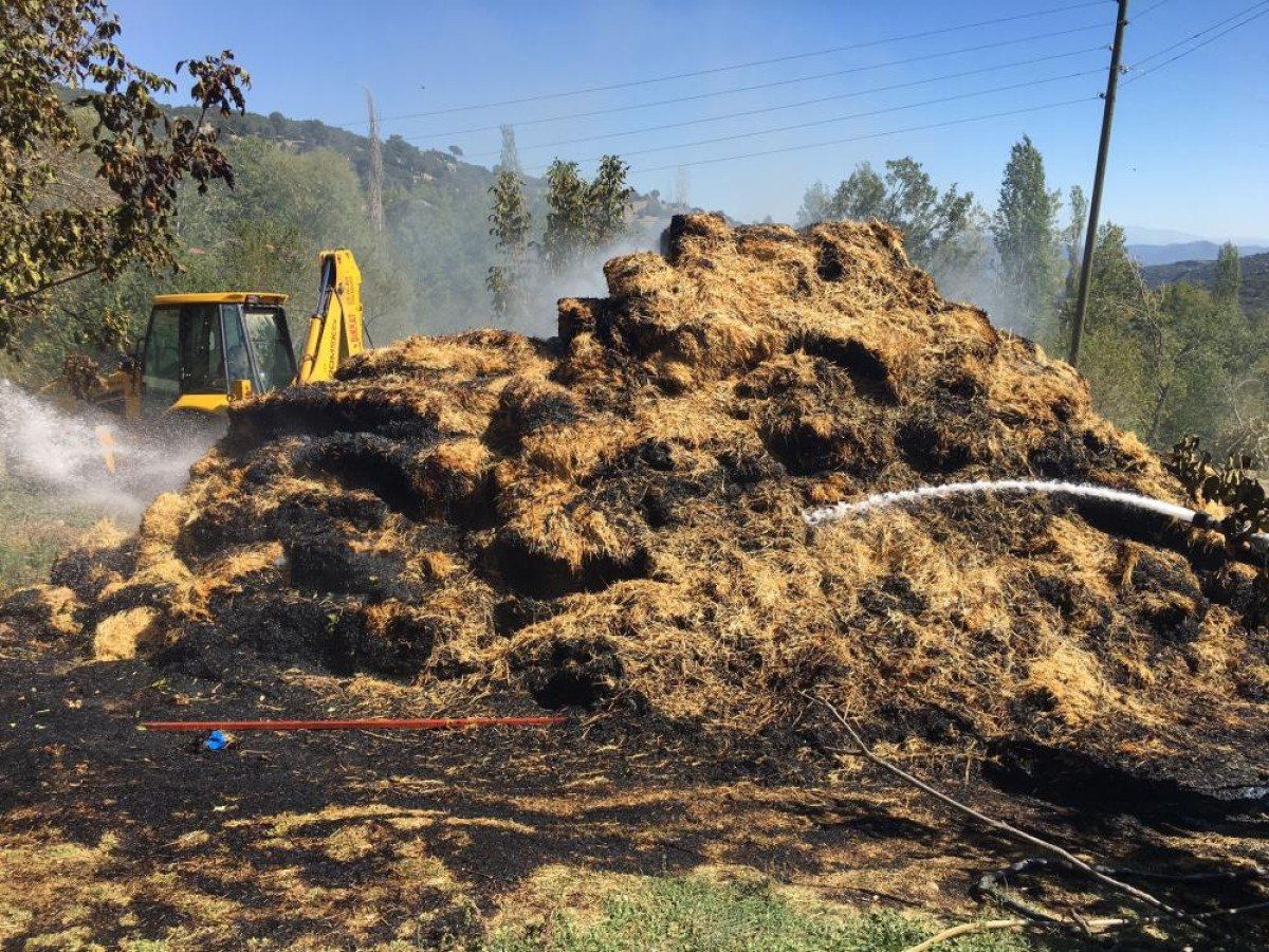 Olay yerine gelen itfaiye ekiplerinin uzun uğraşları sonucu yangın söndürülürken 250 adet saman balyası yanarak kül oldu.