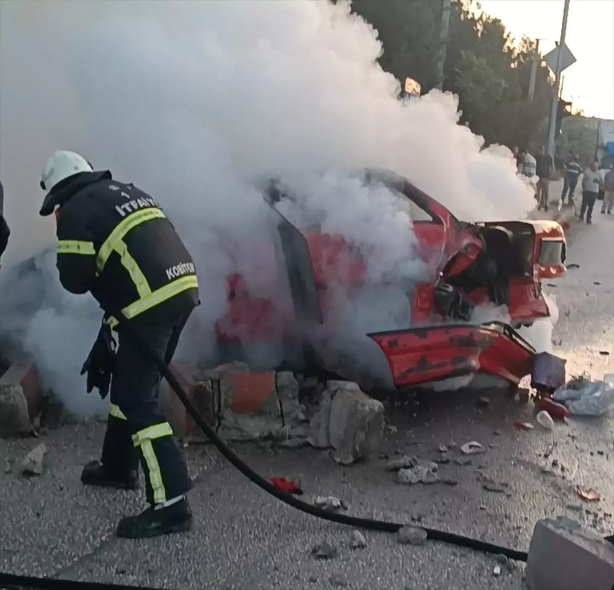 Öte yandan çarpmanın etkisiyle yanan ve itfaiye ekibinin müdahalesiyle söndürülen araç, kullanılamaz hale geldi.