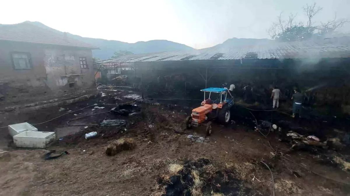 Burdur’un Yeşilova ilçesine bağlı Armut’lu köyünde çıkan yangında saman balyaları kül oldu, 4 büyükbaş hayvan alevlerin arasında kalarak telef oldu.