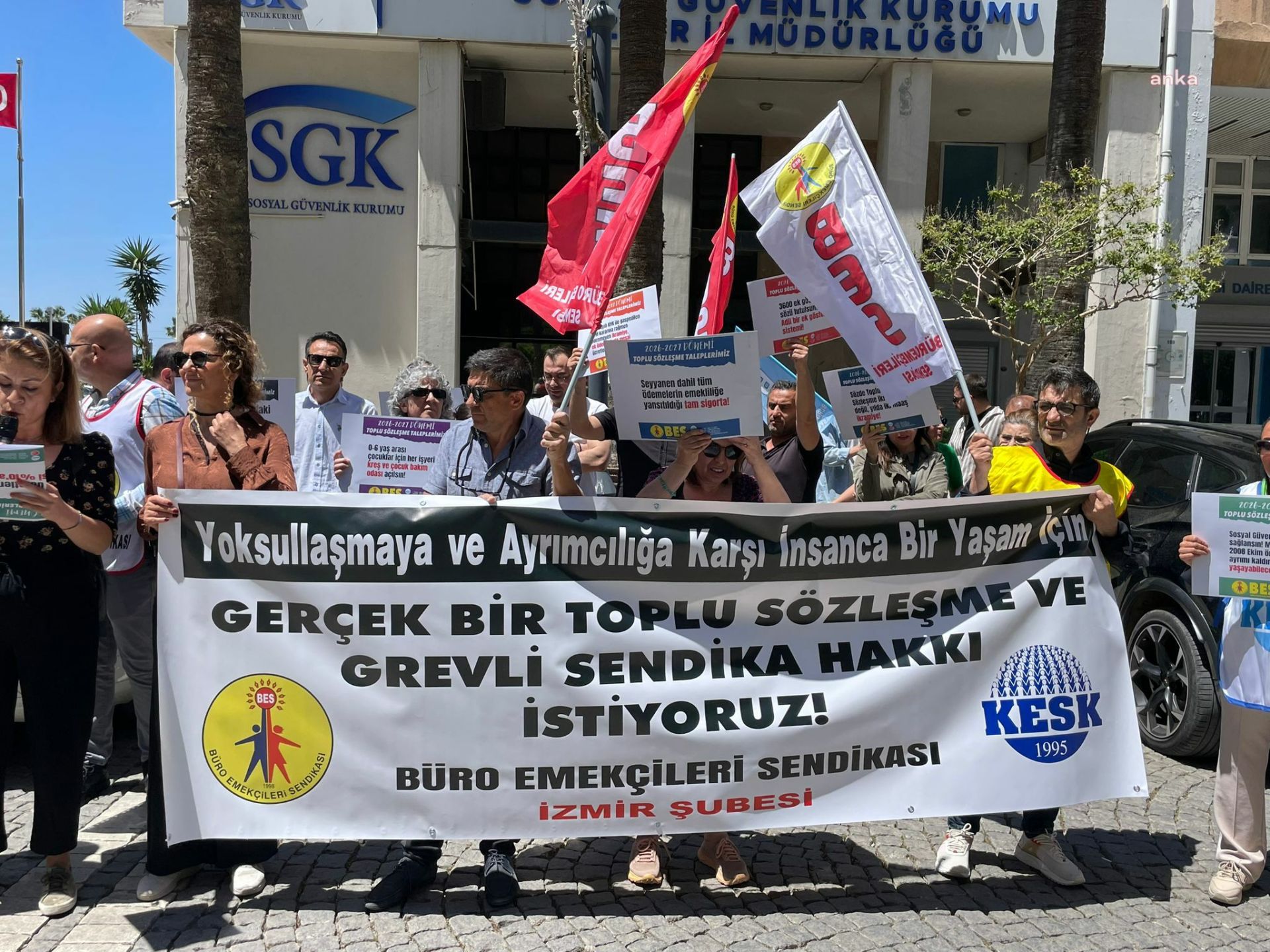 Büro Emekçileri Sendikası İzmir Şubesi üyeleri, SGK İzmir İl Müdürlüğü önünde toplandı.