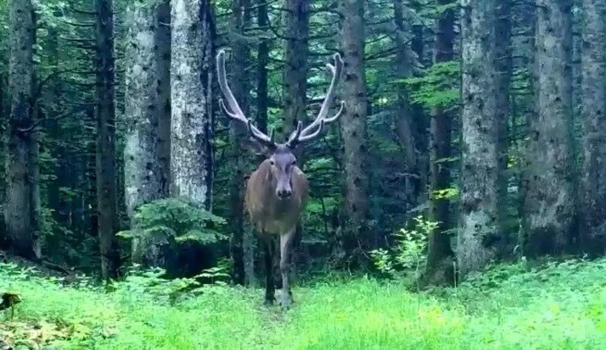 Bursa'nın dağlarında fotokapana takılan kızıl geyik, doğanın en asil sembollerinden biri oldu.