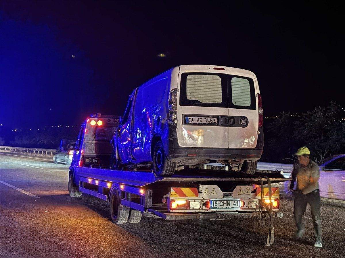 Muratcan Atay (34) idaresindeki 34 HF 3462 plakalı hafif ticari araç, Bursa-İzmir Otoyolu Doğanköy mevkisinde sürücüsünün kontrolünden çıkıp bariyerlere çarptı.