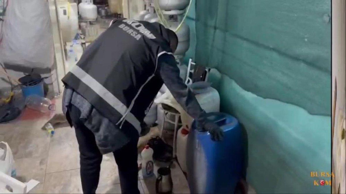 Takibe alınan şüphelinin Mudanya ilçesinde bulunan depoda üretim yapması üzerine ekipler Cumhuriyet Başsavcılığı koordinesinde düzenledikleri operasyon sonrası, 4 ton sahte alkol ele geçirdi.