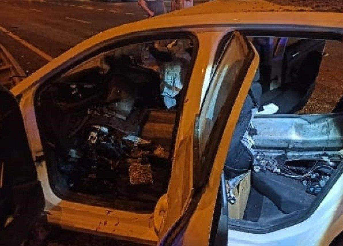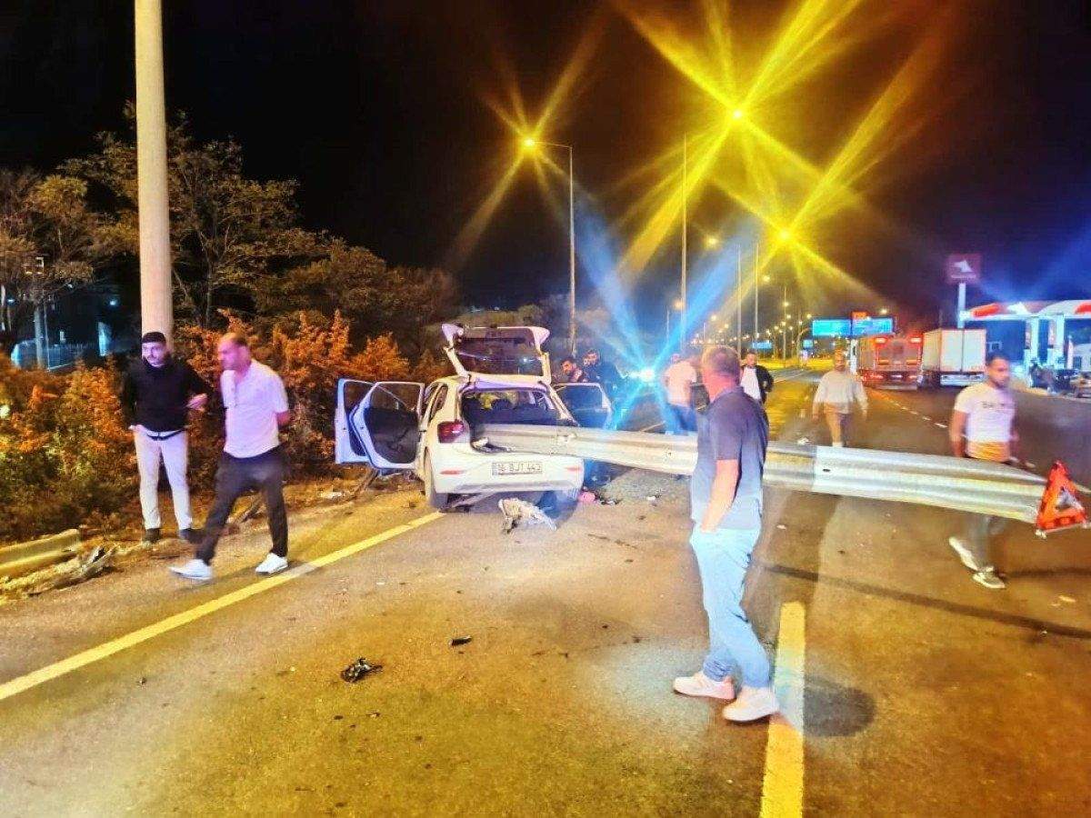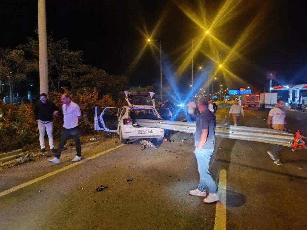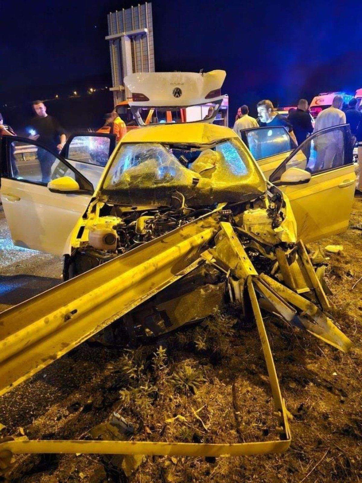 Şiddetli çarpmanın etkisiyle çıkan bariyer aracın motor kısmından girip bagaj kısmından dışarıya çıktı.