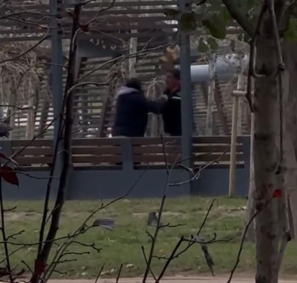 Erkek arkadaşıyla parkta oturan kadın, tartışmaya başladı.
