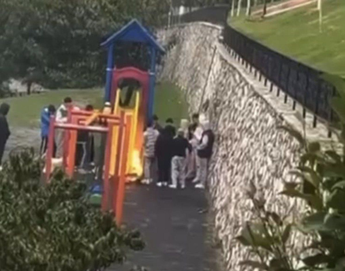 Sohbete dalan gençler, bir süre sonra çocuklara ait olan kaydırağı yaktı.