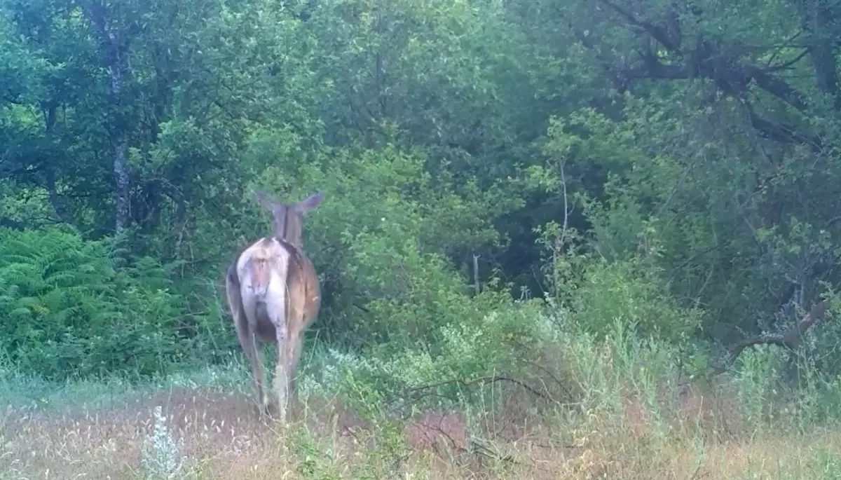 Bursa'da fotokapanlarda dişi kızılgeyik görüntülendi; doğanın dengesini simgeleyen zarif bir siluet.