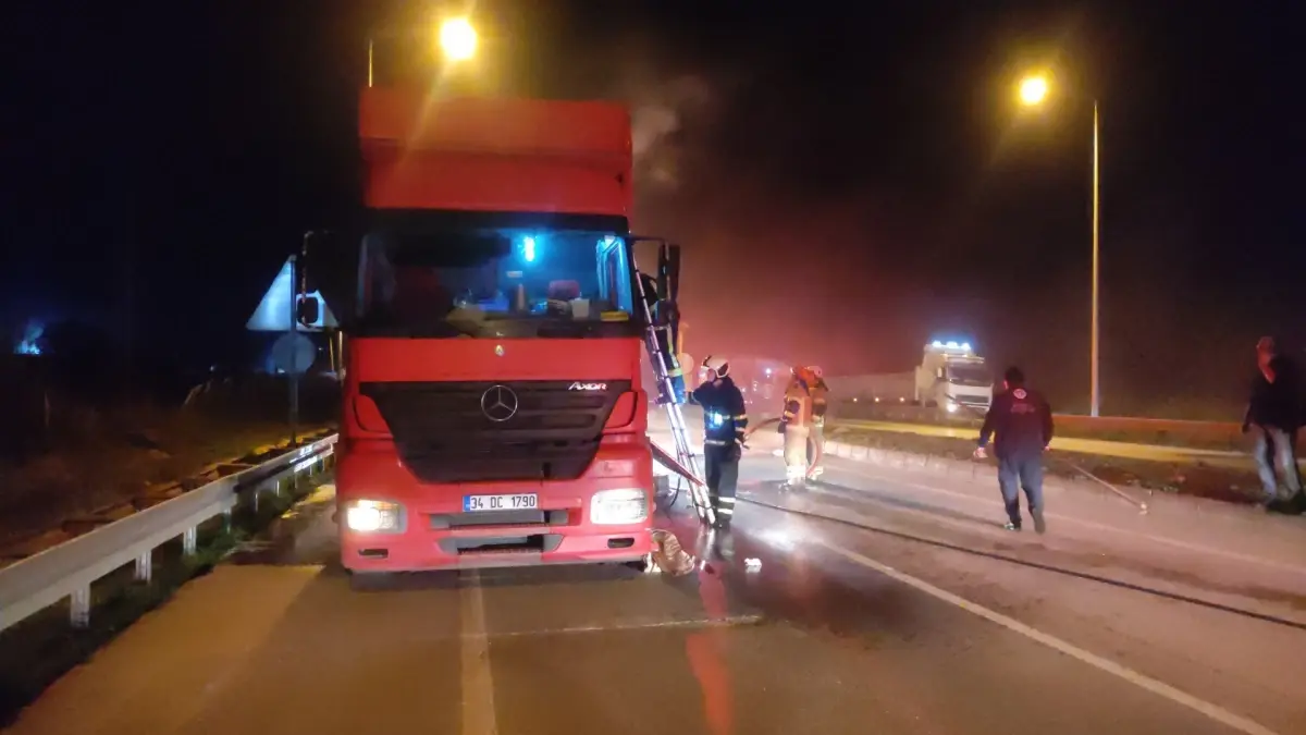 Yangın, akşam saatlerinde İznik Yolu Otoban Kavşağı mevkinde seyreden yaklaşık 20 ton domates yüklü kamyonda çıktı. Edinilen bilgiye göre, 34 DC 1790 plakalı kamyonun lastiğinden yükselen alevleri fark eden sürücüsü Mehmet Akif Gayretli (62), aracını emniyet şeridine çekti. Diğer sürücülerin ihbarı üzerine olay yerine itfaiye ve polis ekipleri sevk edilirken yangın büyüyerek kamyonu sardı. Yangın, olay yerine gelen itfaiye ekiplerinin kısa süreli müdahalesiyle söndürüldü.