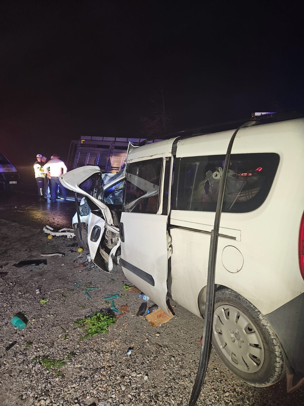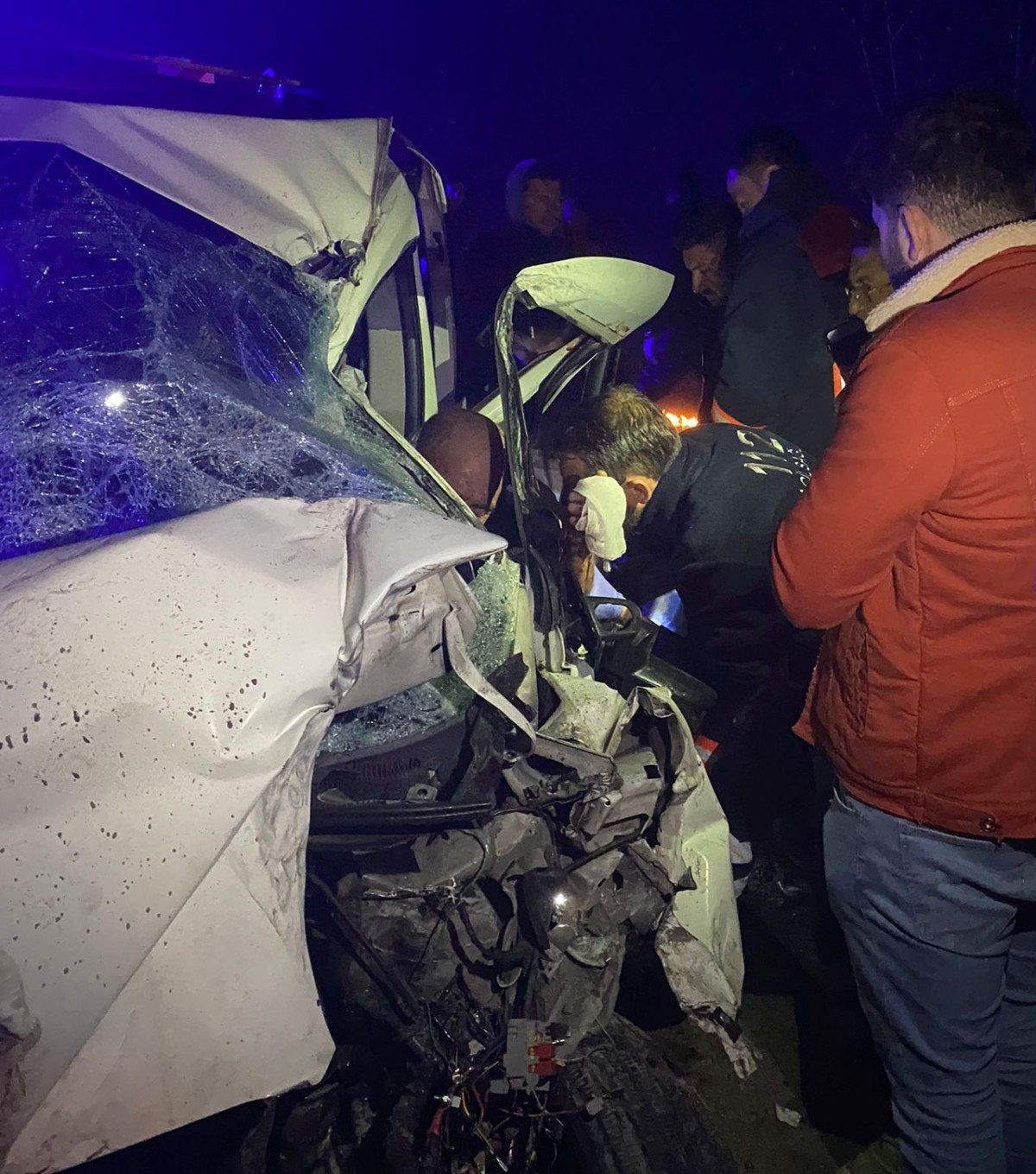 Yaşanan kaza sonrası hafif ticari araçta sıkışan sürücüsü ile araçta bulunan Ülker K. (58), Fadime K. (36), İsmail K. (35), Beyza K. (17) ve Yağmur K. (12) yaralandı.