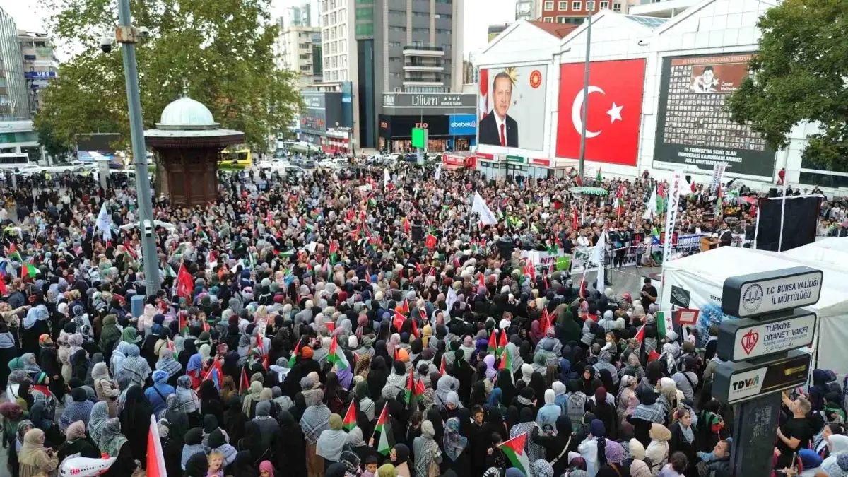 Gazze Dayanışma Platformu ve Bursa Gönüllü Kuruluşlar Platformu tarafından düzenlenen yürüyüş, Ulu Cami önünden başlayarak Şehreküstü Meydanı’nda son buldu. İsrail’in Gazze’ye yönelik saldırılarına tepki göstermek ve Filistin halkına destek vermek amacıyla gerçekleştirilen yürüyüşe binlerce Bursalı katıldı. Ellerinde Türk ve Filistin bayrakları taşıyan vatandaşlar, “Kahrolsun İsrail” sloganları attı.