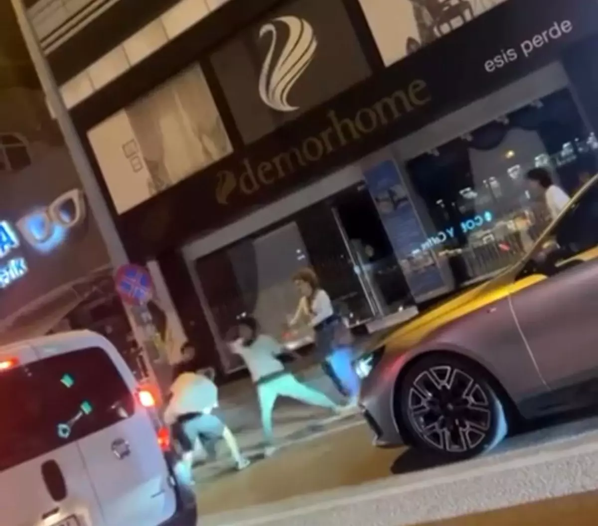 Bursa’nın Nilüfer ilçesi Fatih Sultan Mehmet Caddesi üzerinde akşam saatlerinde karşı karşıya gelen gençler, henüz bilinmeyen bir nedenle tartışmaya başladı. Sözlü tartışma kısa sürede yerini kavgaya bırakınca taraflar birbirine tekme ve yumruklarla saldırdı. Çevredekilerin güçlükle ayırdığı kavga kameraya yansırken, o anlar boks maçını aratmadı. – BURSA