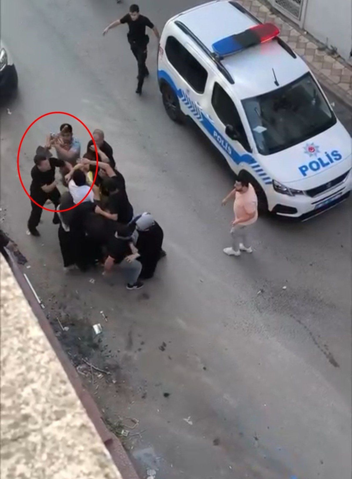O anlar, cep telefonu kamerasıyla kaydedilirken, kavga çevredekilerin müdahalesiyle sona erdi.