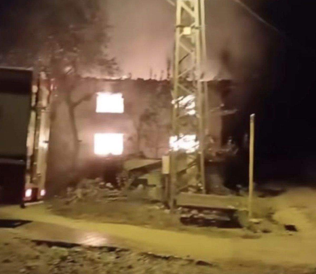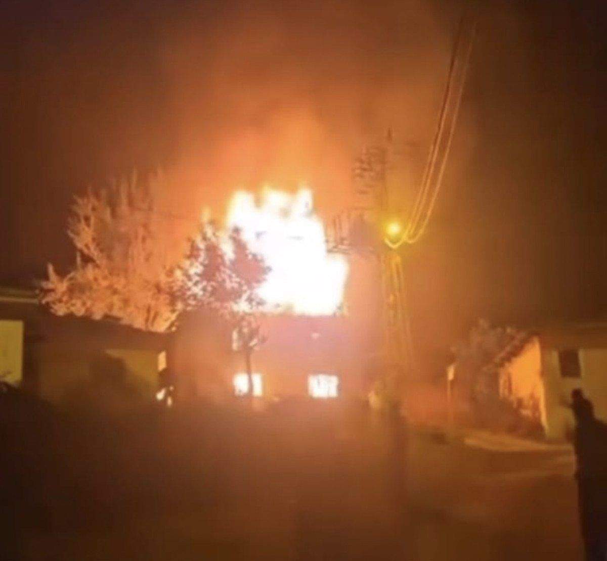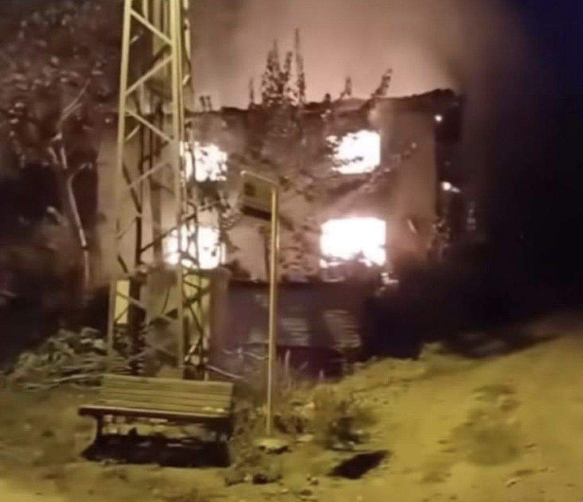 Olay yerine gelen itfaiye ekipleri yangına müdahale ederek kontrol altına alırken alevler geceyi aydınlattı.