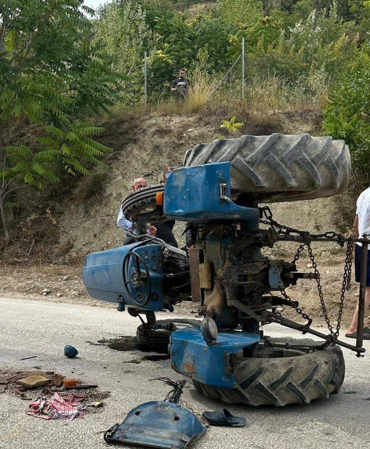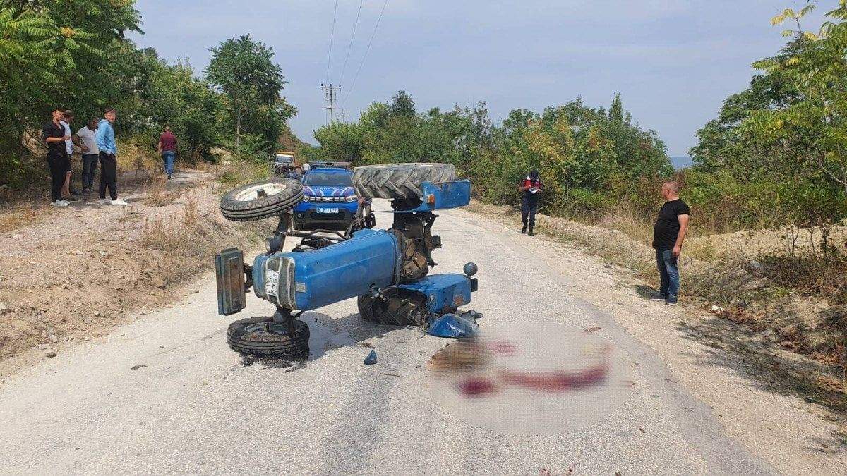 Turan, kontrolden çıkıp devrilen traktörden atlarken, annesi ise aracın altında kaldı.