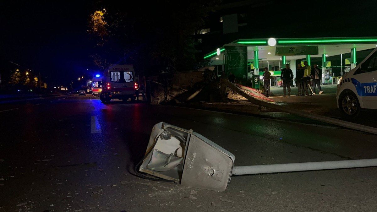 Yoldan çıkan otomobil, yol kenarındaki aydınlatma direğine çarpıp, yan yattı.