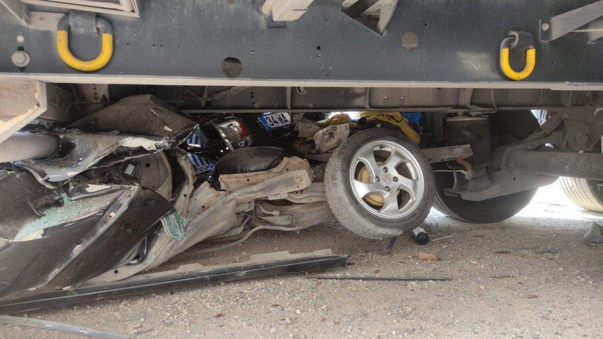 Öte yandan, 2 kişinin hayatını kaybettiği kaza çevredeki bir iş yerinin güvenlik kamerasına yansıdı. Görüntülerde, kontrolden çıkan otomobilin hızla refüje çarptığı ardından da metrelerce savrularak park halindeki TIR’ın dorsesinin altına girdiği görülürken, kazayla ilgili soruşturma başlatıldı.