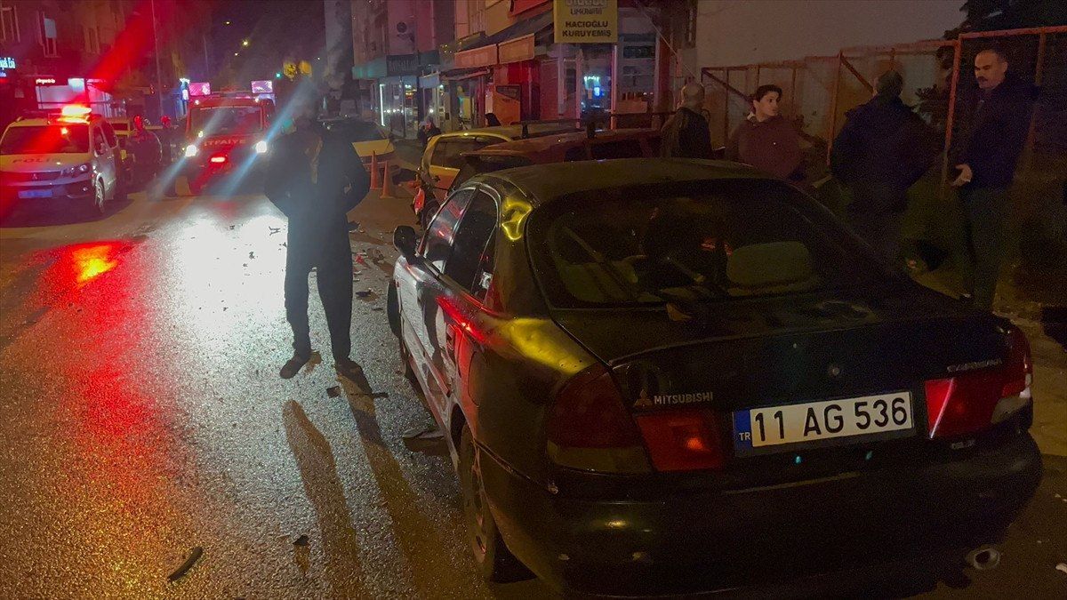 Kontrolden çıkan otomobil yol kenarında park halinde bulunan üç otomobile çarptı.