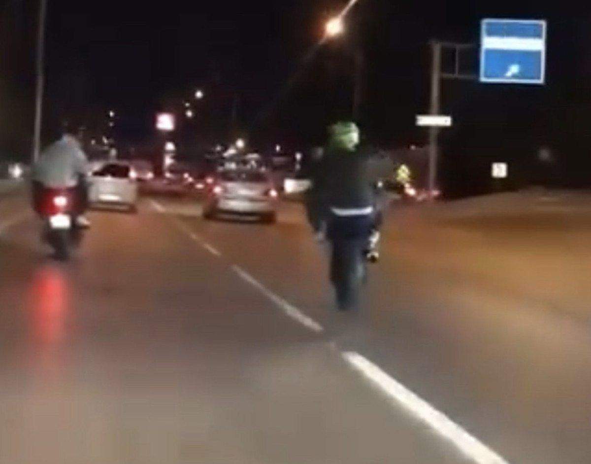 Ayrıca, çekilen görüntülerde başka bir motosiklet sürücüsünün de yakıt deposunun üzerine oturarak trafikte ilerlediği kaydedildi.