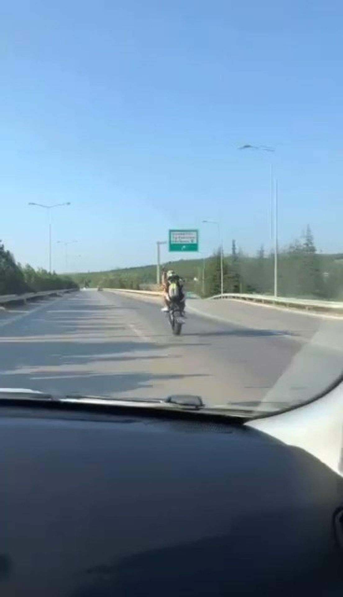 İstanbul-Bursa-İzmir Otoyolu’nda meydana gelen olayda, plakası henüz öğrenilemeyen motosiklet sürücüsü bir anda tek teker ilerlemeye başladı.