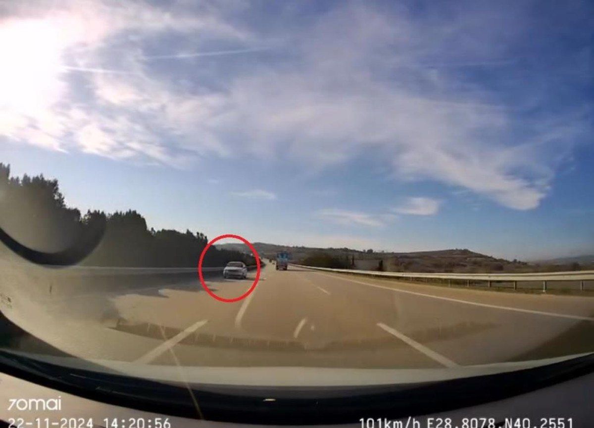 Yolda seyir halindeki bir sürücü yaklaşık 150 kilometre hızla sol şeritten ilerlerken, ters yönden gelen otomobili son anda fark etti.