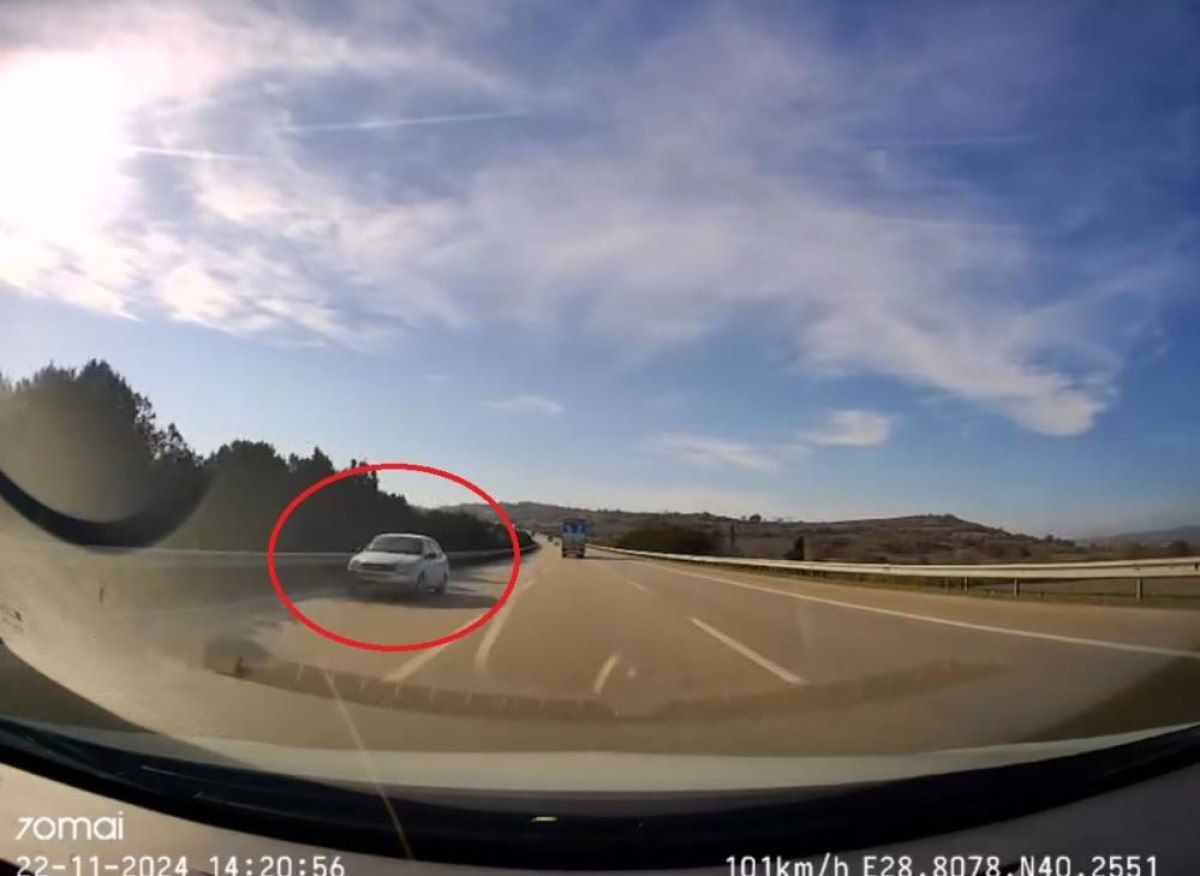 Yolda seyir halindeki bir sürücü yaklaşık 150 kilometre hızla sol şeritten ilerlerken, ters yönden gelen otomobili son anda fark etti.
