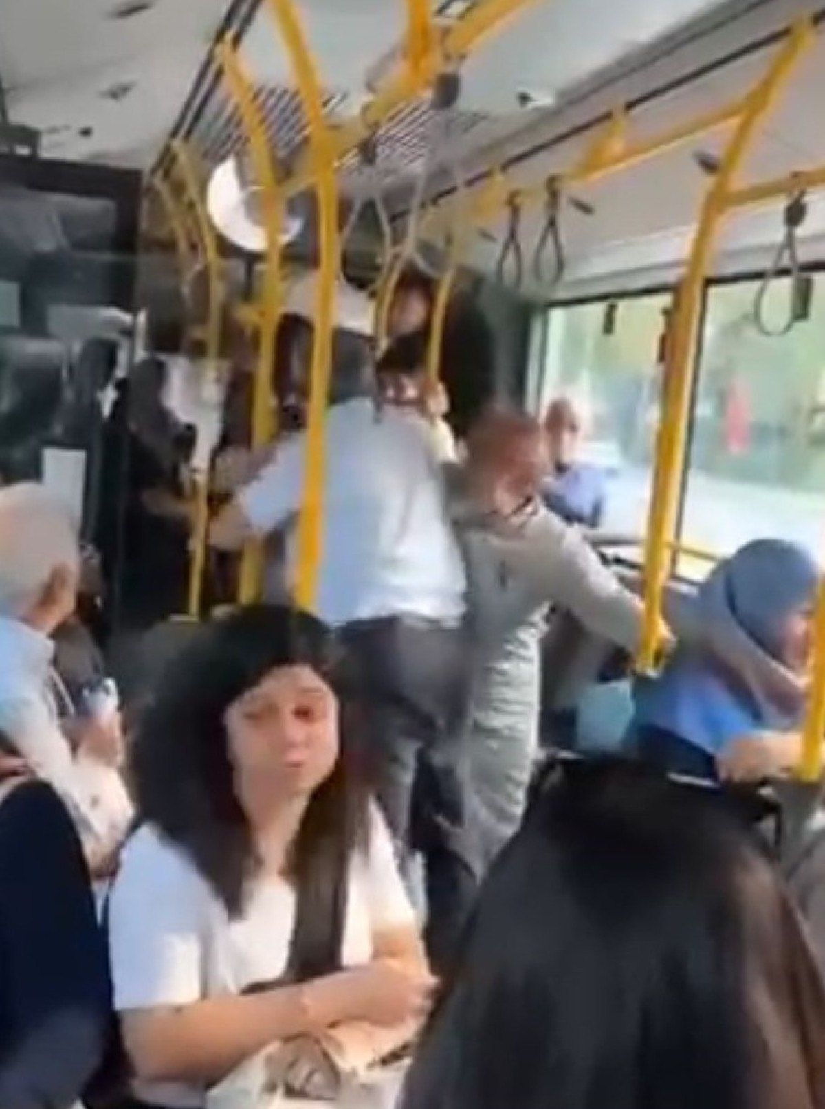 Kavgayı, yolcular ayırmaya çalışırken, o anlar ise bir kişi tarafından cep telefonuyla kayda alındı.
