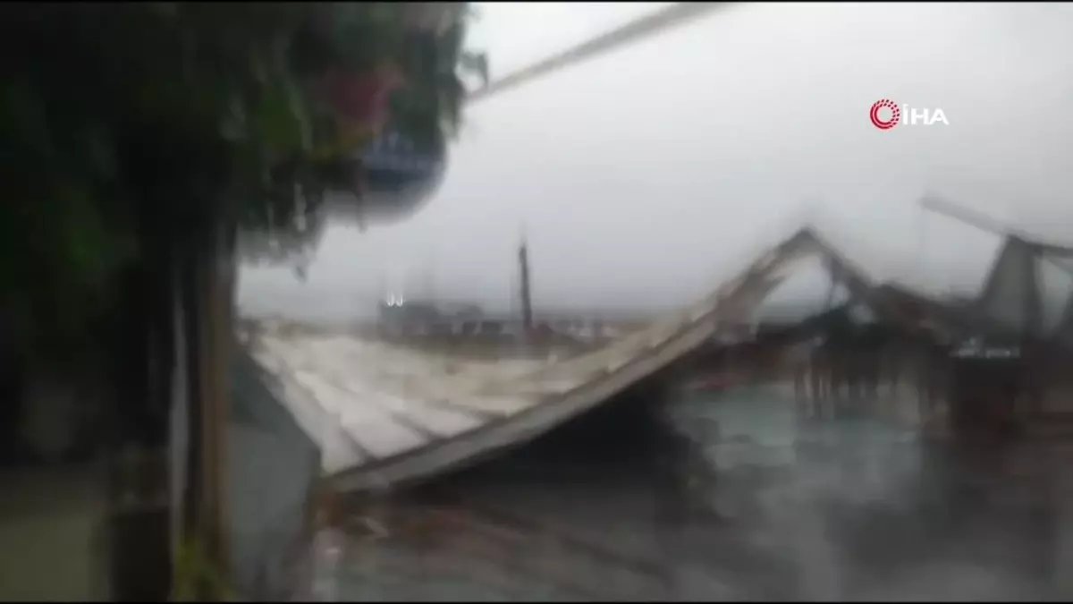 Büyükada’da şiddetli rüzgardan iki restoranın çatısı yıkıldı
