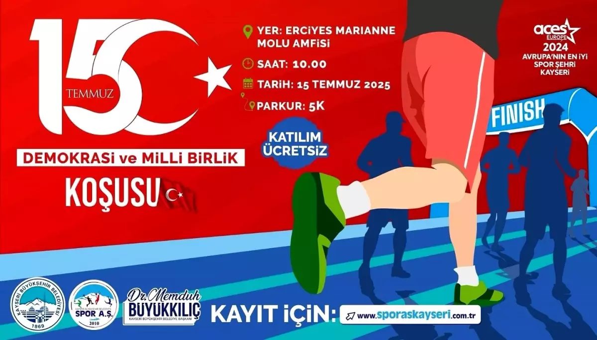 Kayseri Büyükşehir Belediyesi Spor A.Ş., 15 Temmuz Demokrasi ve Milli Birlik Günü anısına düzenlenecek anlamlı koşu etkinliğiyle vatandaşları bir araya getiriyor.