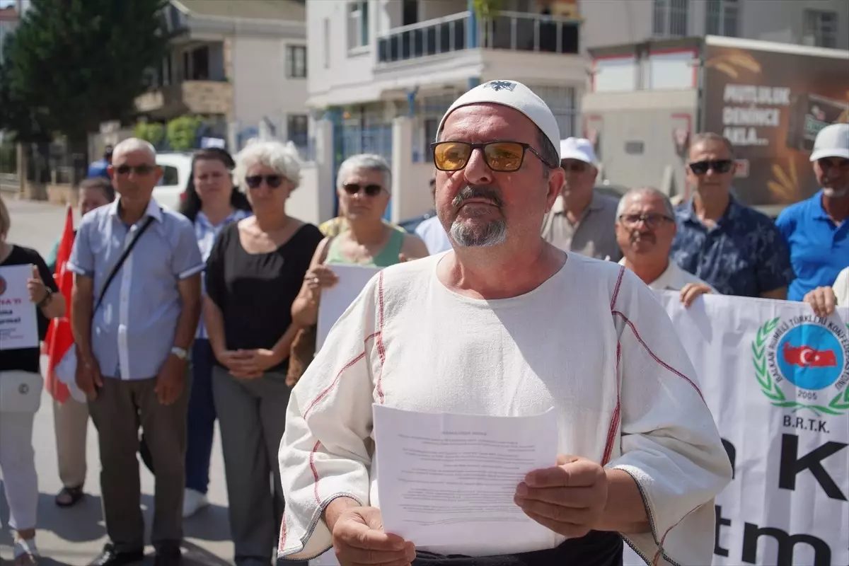 Balkan Rumeli Türkleri Konfederasyonu öncülüğünde bir araya gelen sivil toplum kuruluşu üyeleri, Konsolosluk önünde toplandı.