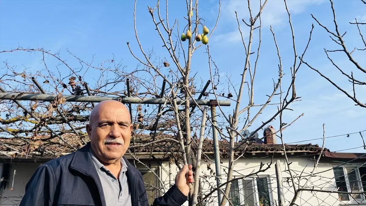 Çanakkale’nin Çan ilçesinde bir evin bahçesindeki armut ağacının temmuzun ardından kışın da meyve vermesi şaşırttı.