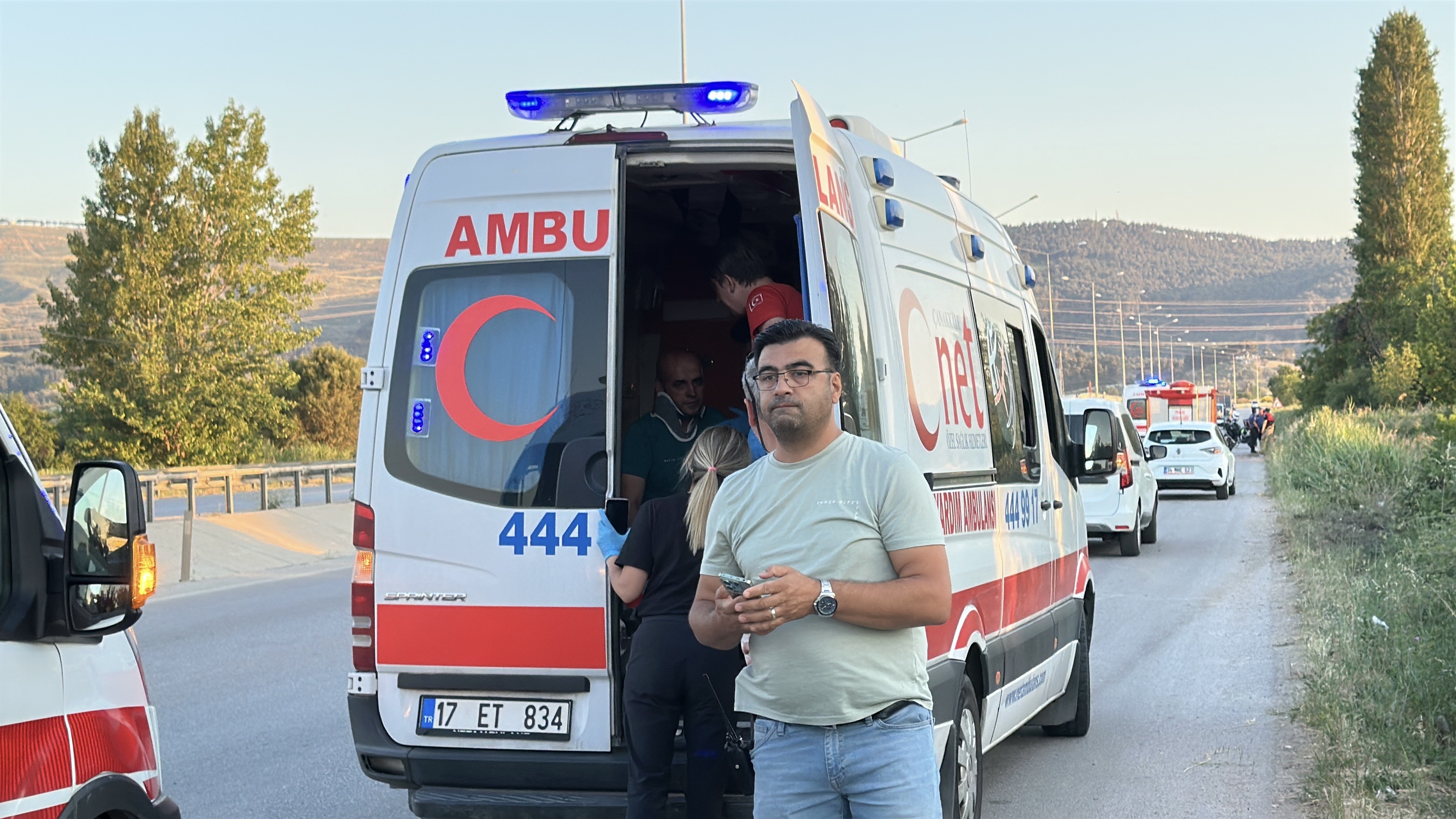 Çanakkale-İzmir karayolu üzerinde saat 19.30 sıralarında meydana gelen kazada, edinilen bilgilere göre İzmir istikametine seyir halinde olan A.Y. idaresindeki 34 KGN 65 plakalı otomobil, henüz belirlenemeyen sebepten E.E. idaresindeki 17 AAE 635 plakalı otomobil ile A.K. kontrolündeki 59 AIA 003 plakalı otomobile çarptı.