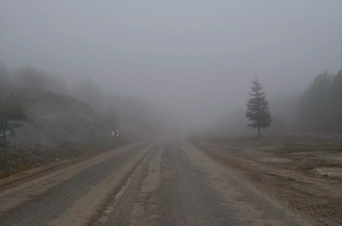 Çankırı-Ankara kara yolu Şabanözü ilçesi mevkisinde etkili olan sis nedeniyle görüş mesafesi yer yer 50 metreye kadar düştü.