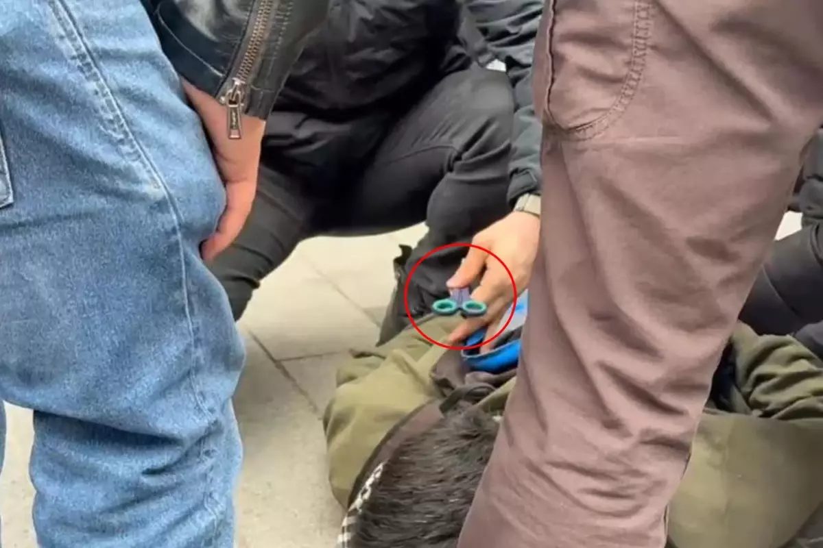 Dağılmamakta ısrar eden grup üyeleri, izinsiz yürümek isteyince polis ekipleri müdahalede bulundu. Uyarılara rağmen dağılmayan grupta yer alanları gözaltına alındı. Gözaltına alınan bir göstericinin çantasından makas çıktı. Gösterici bunun üzerine “Makasla burun kıllarımı alıyorum” dedi.
