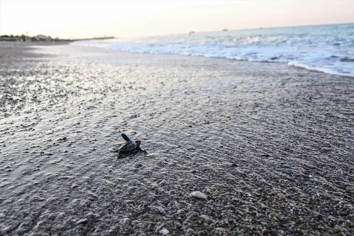 Antalya’nın Kızılot sahillerindeki yuvalarından çıkan nesli tükenme tehdidi altındaki caretta caretta yavruları zorlu yolculuğun ardından mavi sularla buluştu.