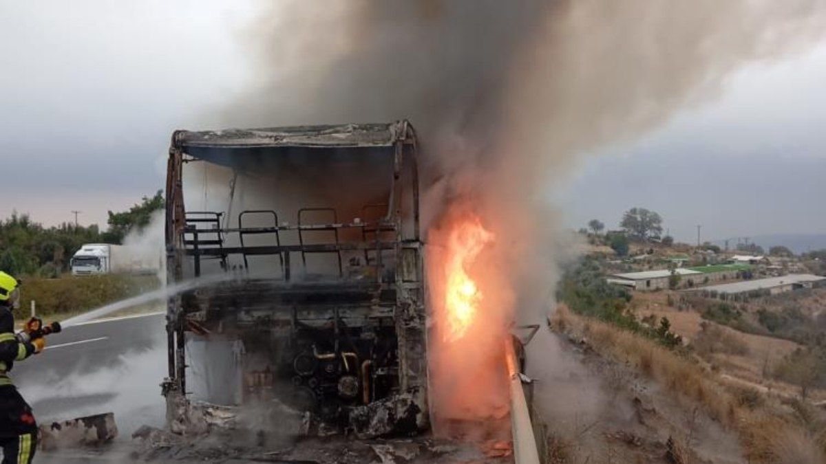 Adana istikametine giden yolcu otobüsü, otoyol Damlama Mevkiinde motor kısmından yandı ve küle döndü.