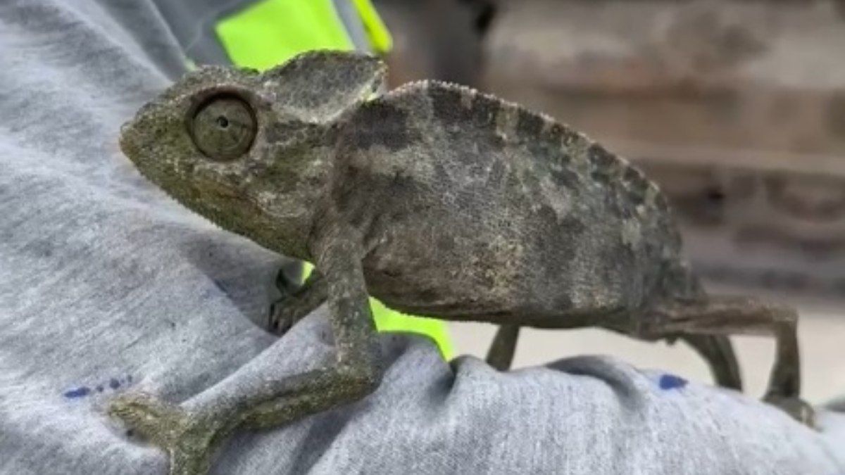Adana’da yıkım işlemi sırasında binada bukalemun bulundu