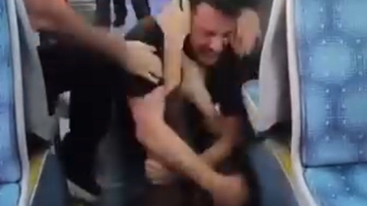 Kepez'de bir yolcunun yanındaki çocuğu dövmesi sonrası, duruma tepki gösteren 2 erkek yolcu ile kavga ettiği anlar cep telefonuyla görüntülendi.