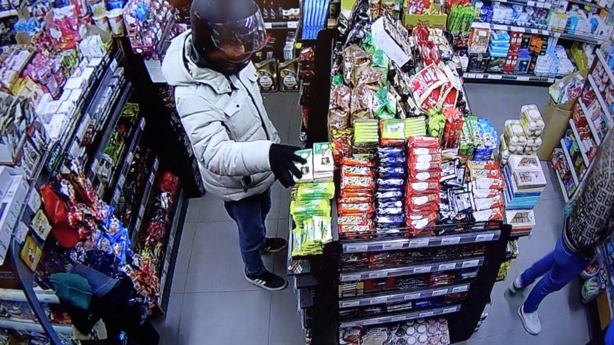 Motosiklet ile akaryakıt istasyonuna gelip, kaskla girdiği marketten Dubai çikolatası çalan şüphelinin hırsızlık anları, güvenlik kamerasına yansıdı.