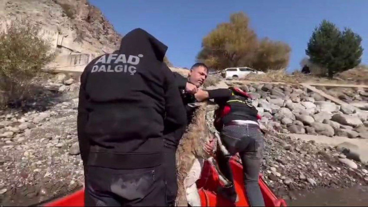 Tunceli’de suya düşen koruma altındaki yaban keçisi, AFAD ekiplerince kurtarıldı.