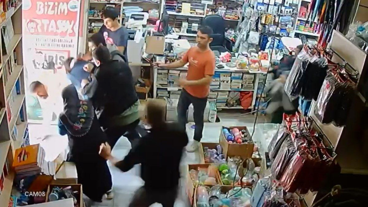 Avcılar'da 2 çocuk bir kırtasiyeye torpil atıp kaçtı. Çalışanlar torpil atanları kovalayınca, çocukların yakınlarının saldırısına uğradı. Saldırı, güvenlik kameralarına yansıdı.