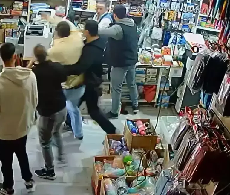 Dükkan sahibi ile kiracılar arasında alacak meselesi nedeniyle çıkan kavga, dükkanda bulunan güvenlik kamarası tarafından kaydedildi.