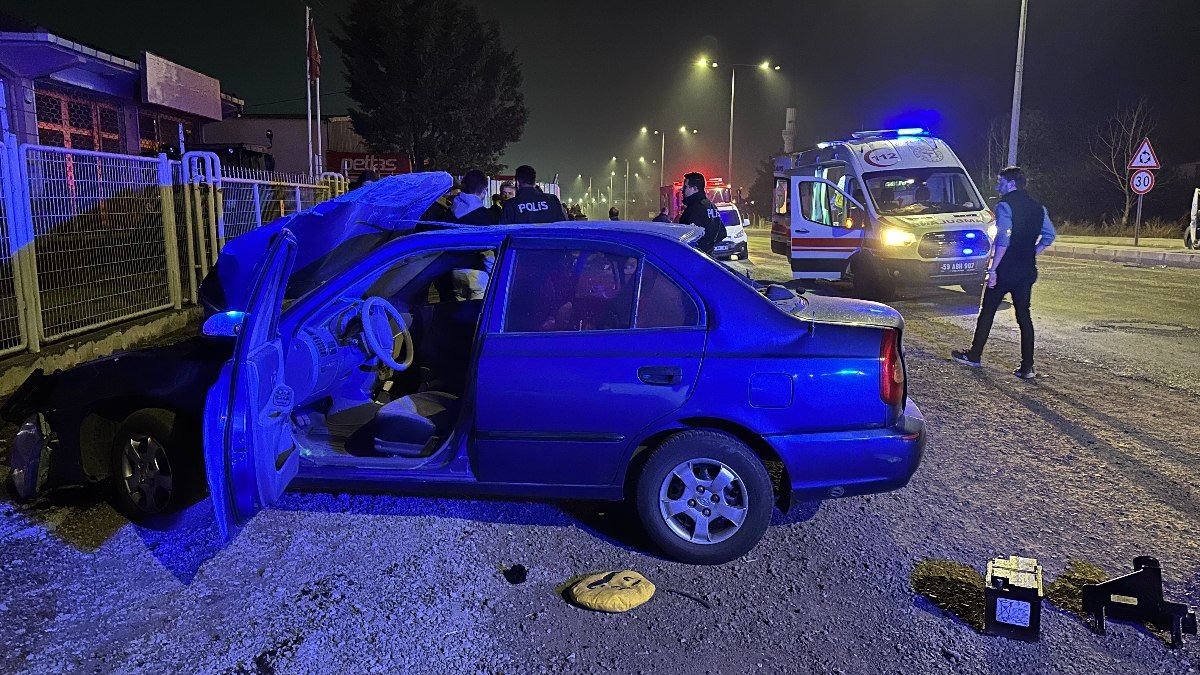 Tekirdağ’da kontrolden çıkan otomobil, bir iş yerinin duvarına çarparak durabildi
