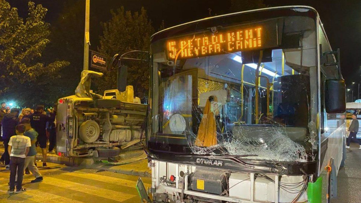 Belediyeye ait yolcu otobüsü ile pikabın çarpıştığı kazada, aralarında çocuklarında olduğu 6 kişi yaralandı.