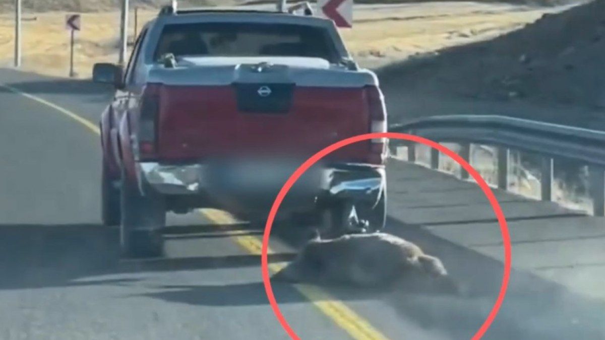 Öldürdüğü domuzu kamyonetinin arkasına bağlayıp kilometrelerce sürükleyen şüpheli yakalandı.
