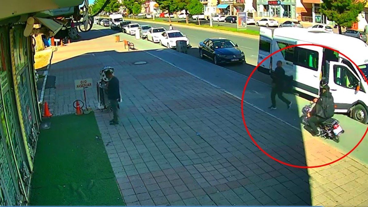 Midyat ilçesinde minibüsten inerek kaldırımda yürüyen Murat B.'ye motosiklet çarparken, kaza anı da güvenlik kamerasına yansıdı.