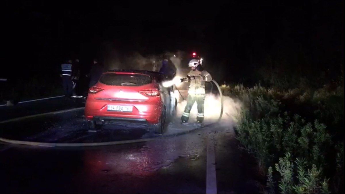 İstanbul’da korkutan kaza: Otomobil alev alev yandı