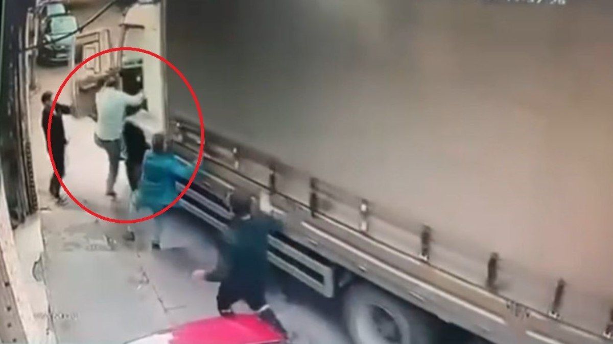 El freni çekilmeyen kamyon hareket etmeye başladı. Durumu gören bir kişi, hareket eden kamyona binerek el frenini çekti. Faciadan dönülen…