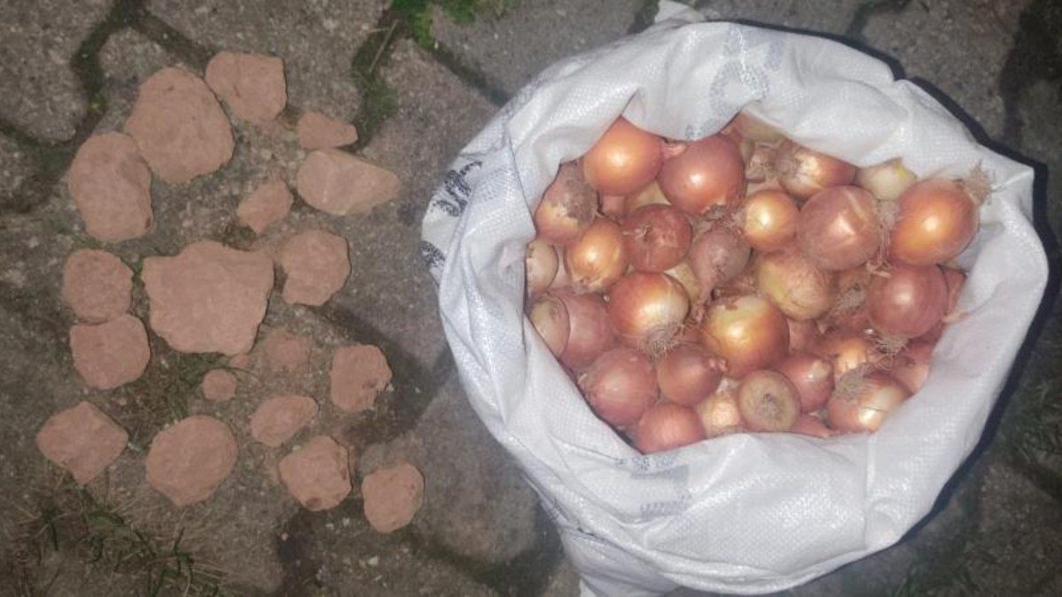 Erfelek ilçesinde kimliği belirsiz şahıslardan soğan satın alan Nazmiye Çil, çuvallardan çıkan taşları görünce şoke oldu.
