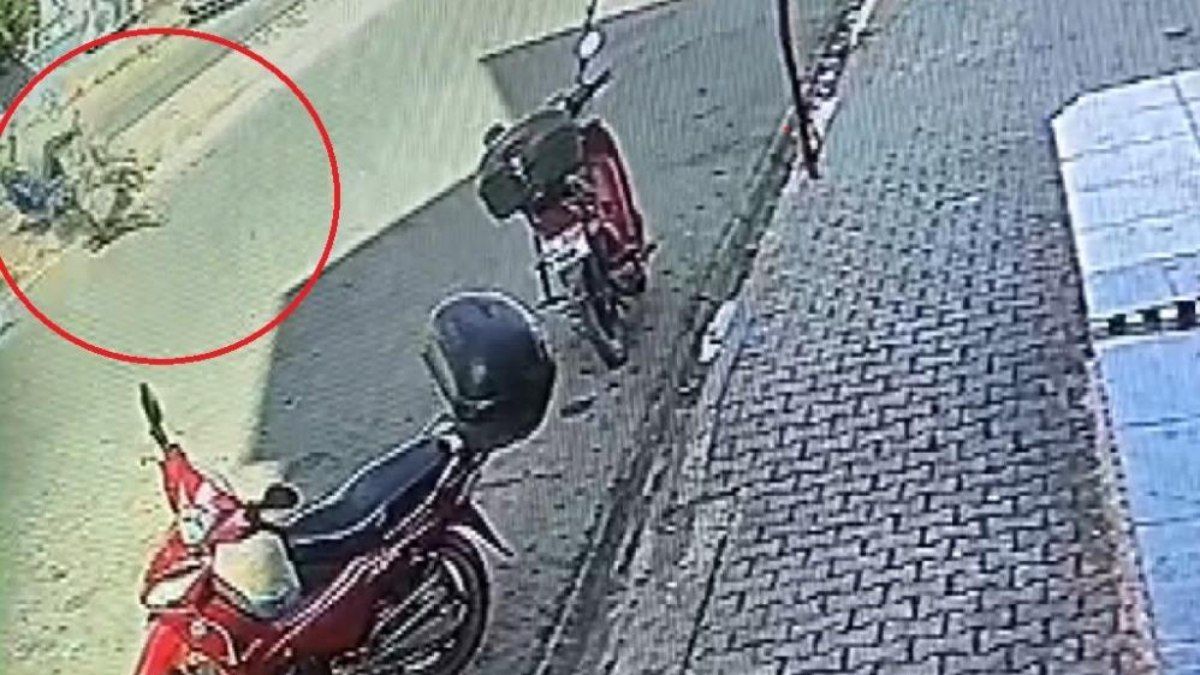 Reyhanlı ilçesinde yolun karşısına geçmek isteyen yaşlı adama motosikletin çarptığı anlar, güvenlik kamerasına yansıdı.