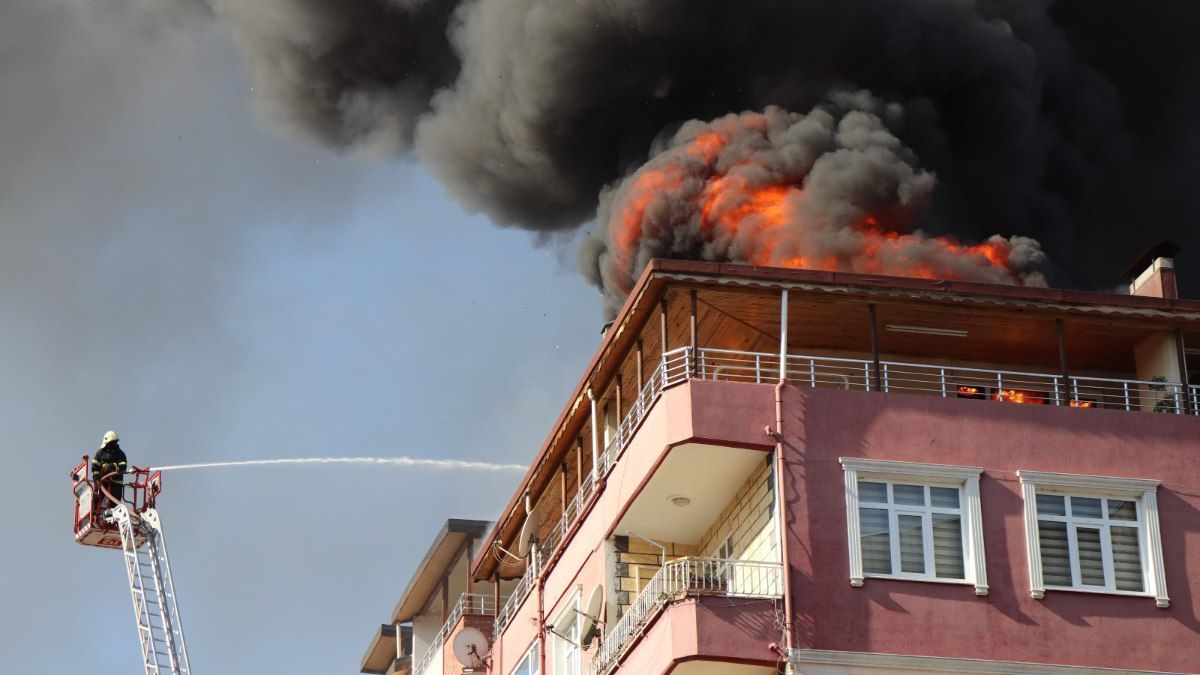 Ünye ilçesinde 5 katlı binanın çatı izolasyon tamiri sırasında çıkan yangında 2 daire tamamen kullanılamaz hale geldi.